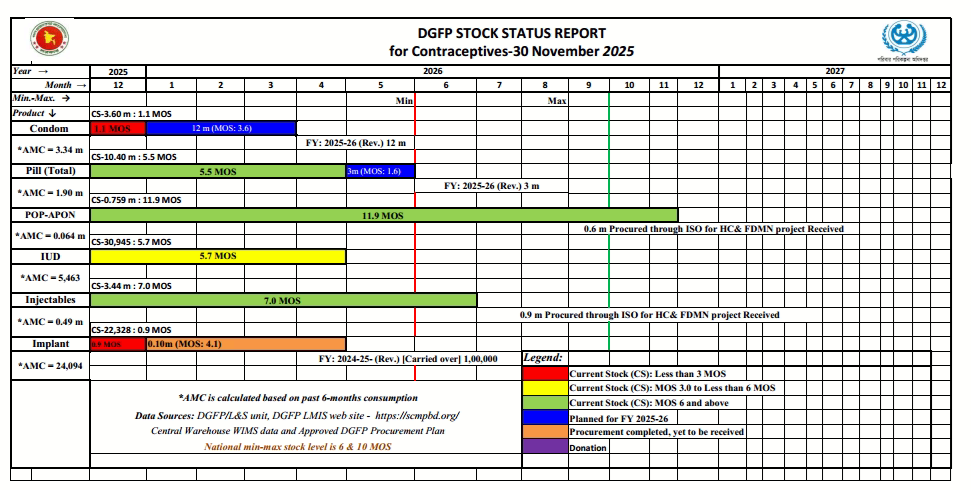 PILL (Shukhi) - Current national stock of Oral Contraceptive Pill is 10.40 million cycles which will go up to April 2026 based on the current average monthly consumption.